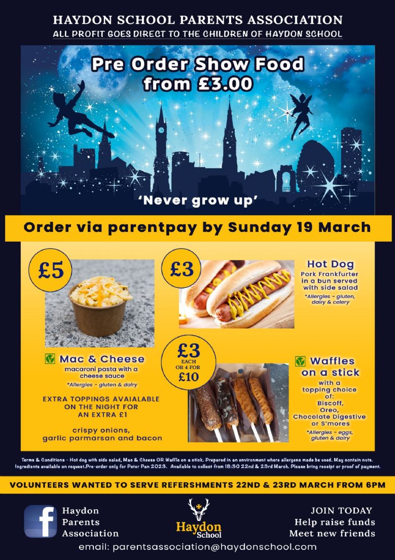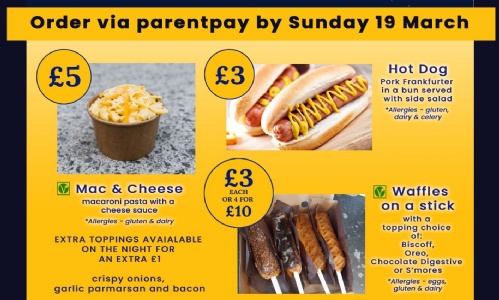 You can now pre-order food on ParentPay to make you School Show evening even better!