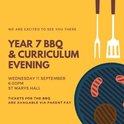 The BBQ and Year 7 Curriculum Evening is being held on Wednesday 11 September 2019 and will start at 6.00pm.
