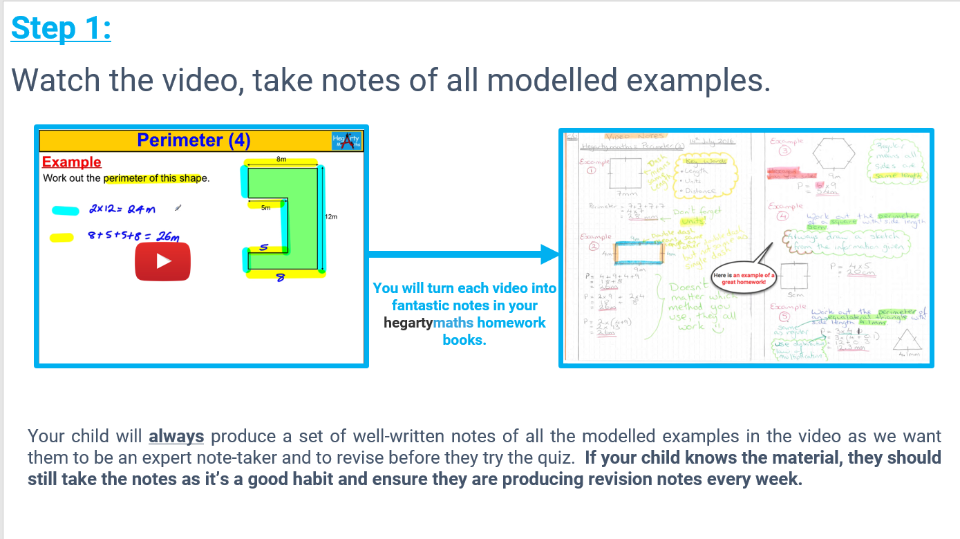 - Ensures your child will be successful: Watching the video will ensure your child will do well in the quiz and feel good about their homework and maths. We don’t want your child to feel like they are on their own at home and the videos will give you the support they need to guarantee that they have a successful homework.