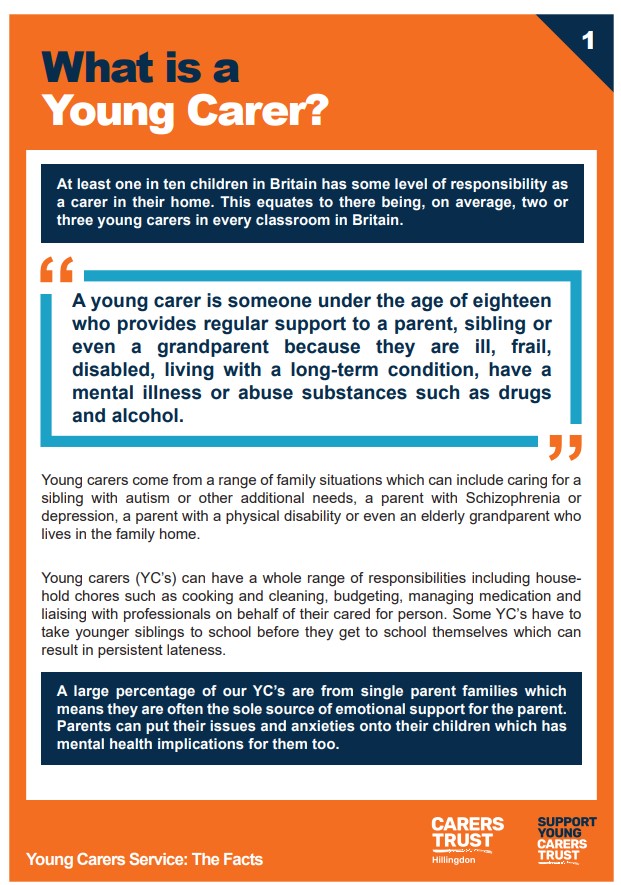 If you would like further information, please speak to Ms Lisa Wyatt in school 0208 4290005 Ext.133 or contact Carers Trust Hillingdon on 01895 811206.