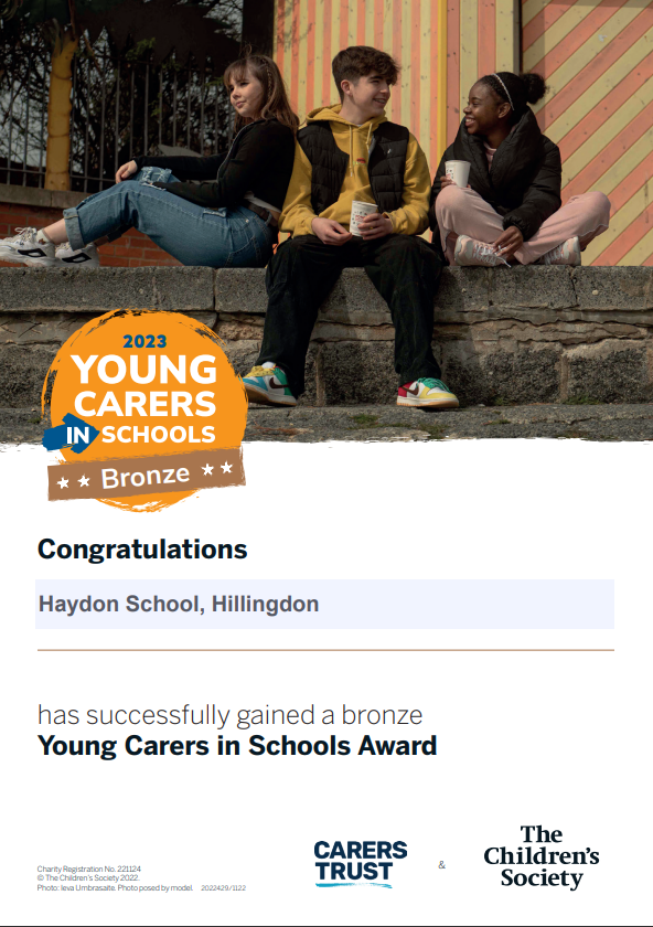 Carers Trust Hillingdon is delighted to be working with Haydon School to provide information, advice and support to young carers and their families. Young carers are children and young people aged from 5 to 25 years old who help to look after someone in their household who has a disability, mental or physical ill-health or misuses substances. This could be a child caring for a sibling with autism, a mother with depression, a father with cancer or even a grandparent with dementia. We are a registered charity and our aim is to reduce the impact that caring can have on a young person by providing free trips and activities, youth clubs, workshops, and support for young carers in school through 1:1 or small group work.